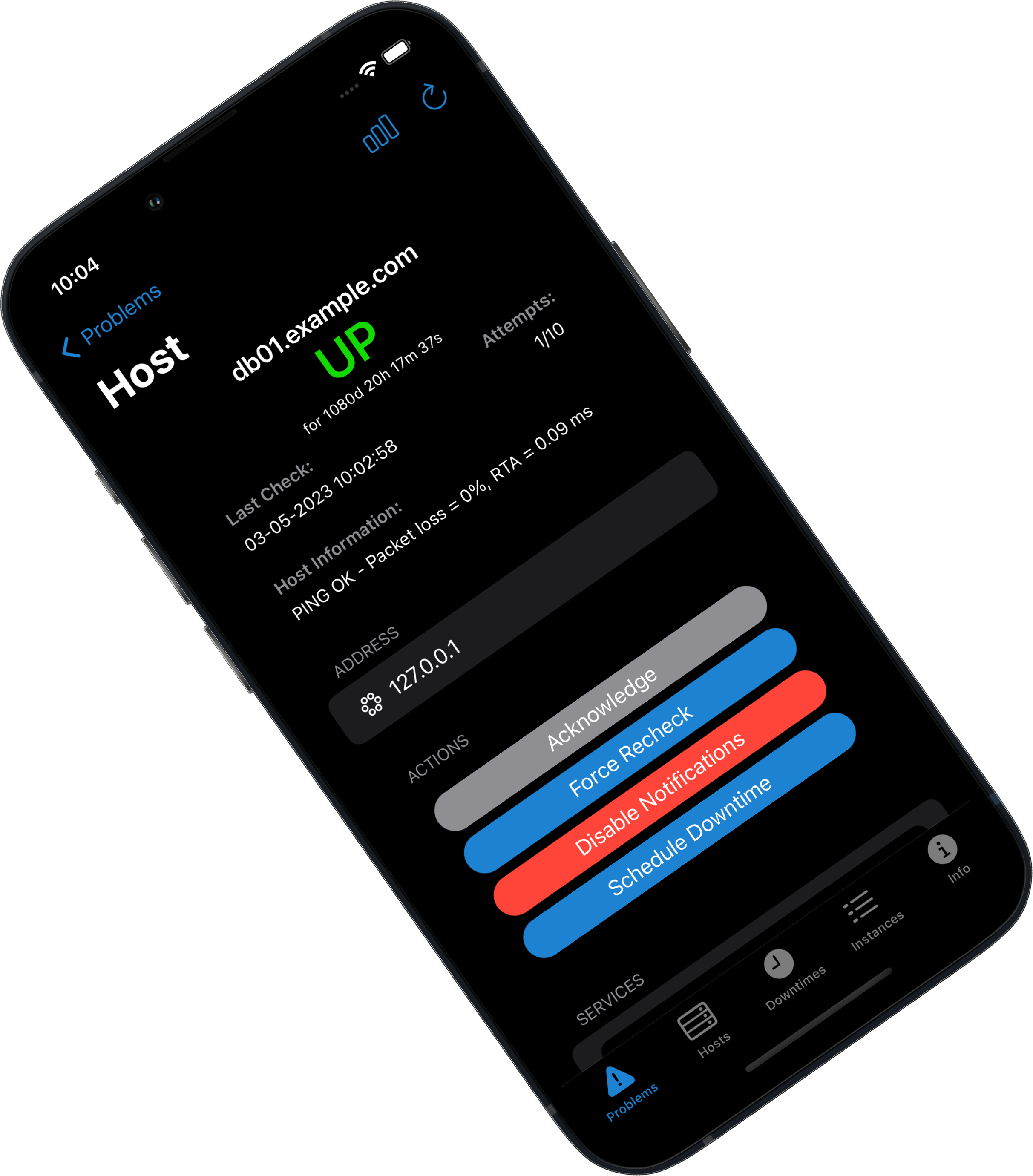 The monitoring system should determine when, which host or service should be notified, and which persons should receive the notification. For these reasons, we never considered implementing local push notifications.